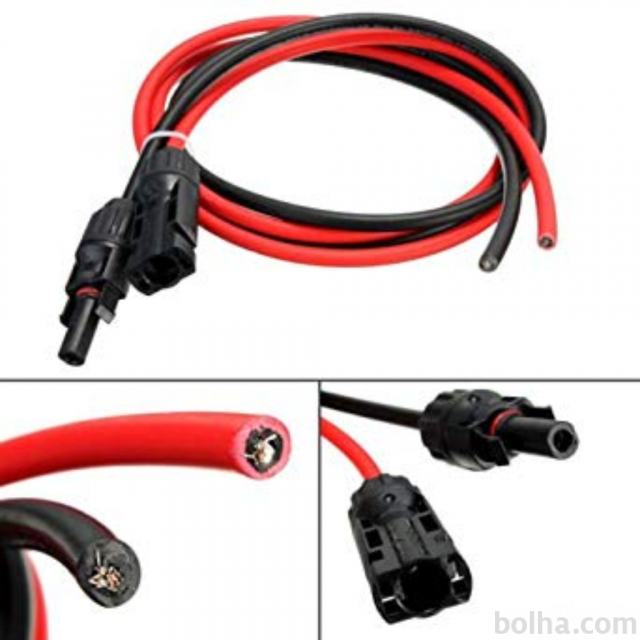 Novo pri nas: kompleti solarnih kablov (črn + rdeč) z GRATIS MC-4 konektorji različnih dolžin. Pripravljene (dvojne) dolžine so 5m, 10m, 15m, 20m, odrežemo in pripravimo pa vam kable tudi na željeno dolžino.