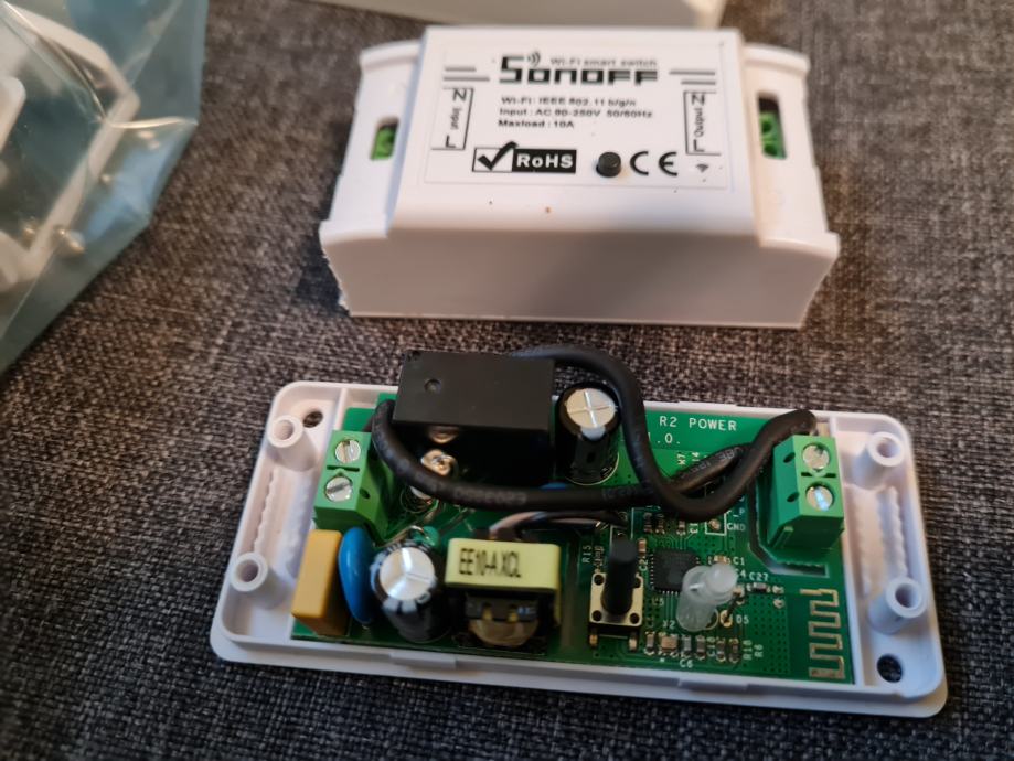 Prodam set (3 kosi celi, 2 izven ohišja (ohišje priložim)) Sonoff basic predelanih za delovanje s sistemom HA home assistant.