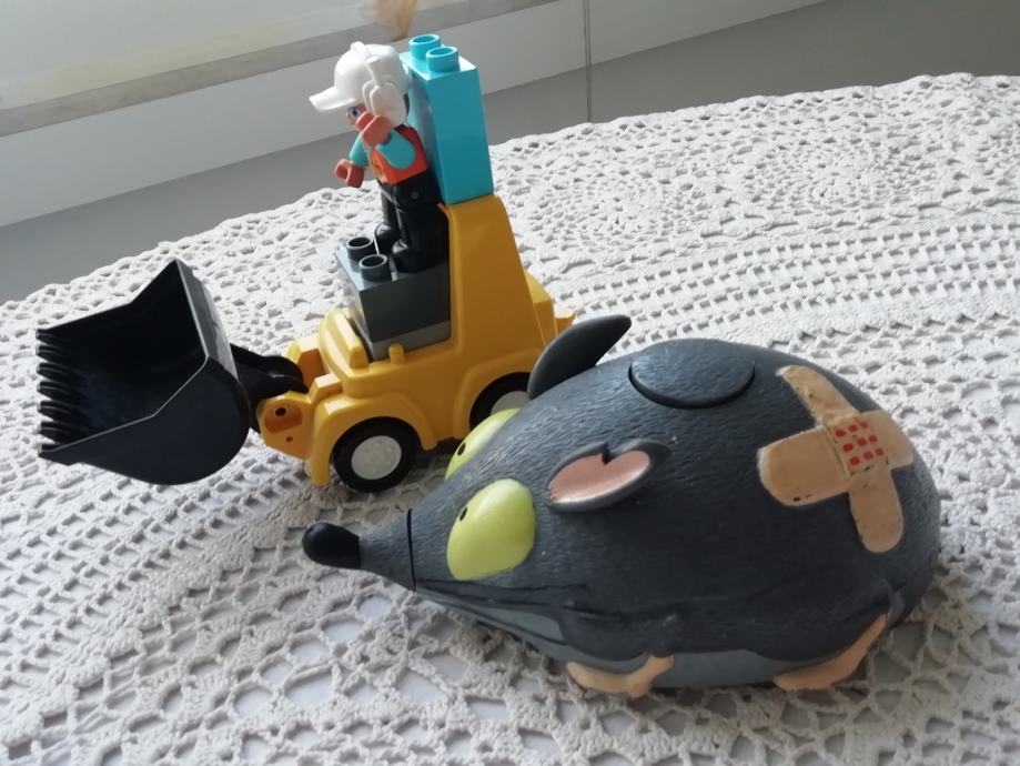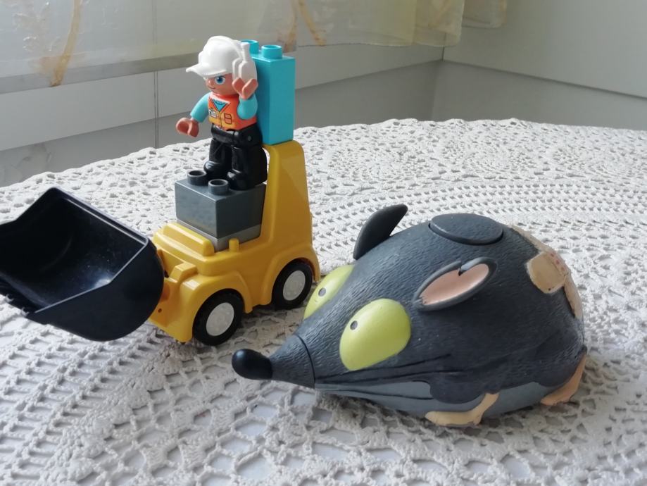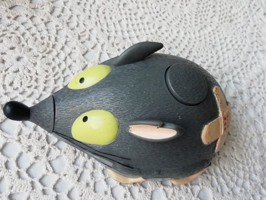- velika miš na baterije, se oglasi in dirja po prostoru, vel. 17,5x10x8 cm, delujoča, cena 3,5 €