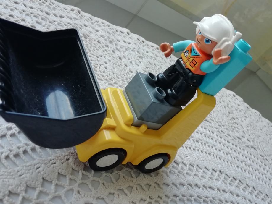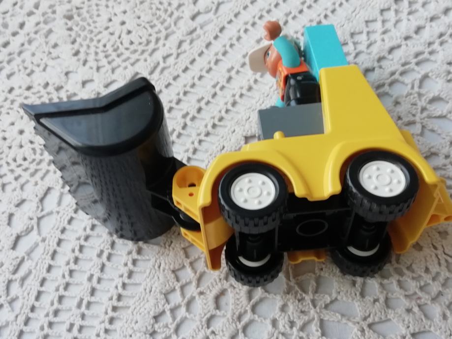 - delovno vozilo iz lego kock, vel. 11x6x14 cm, sprednji del se dviga in spušča, cena 1,30