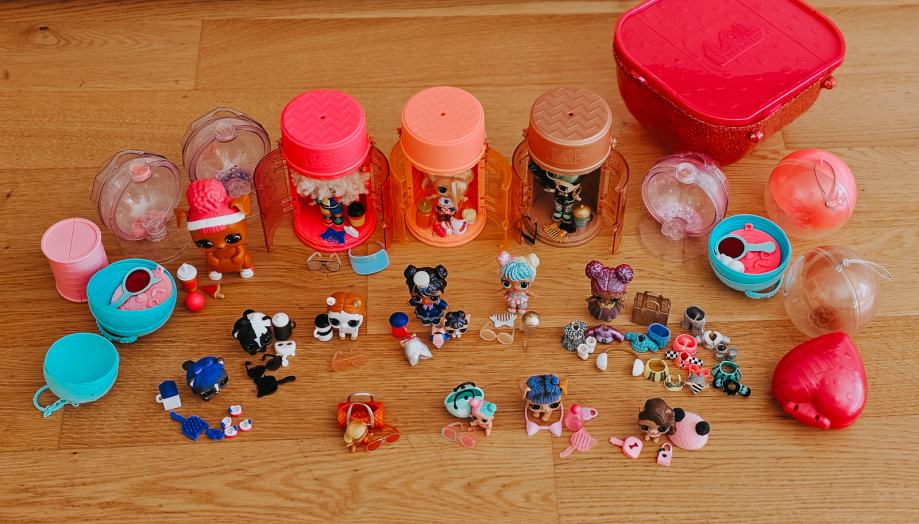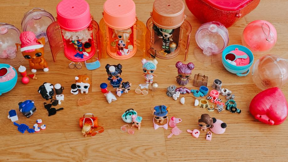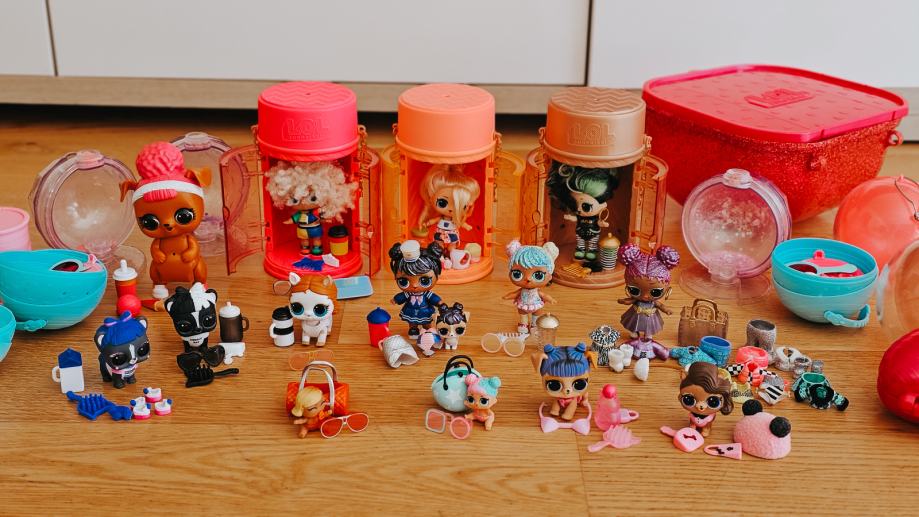Prodam komplet LOL Surprise punčk oz.figuric. V kompletu 14 figuric z dodatki, ena od teh z veliko več dodatki ter kuža na baterije.