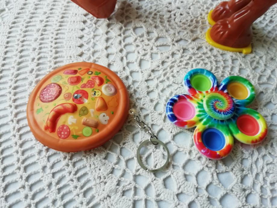 - Obesek za ključe v obliki mehke pice, premer 8 cm, cena 0,50 €, PRODANO