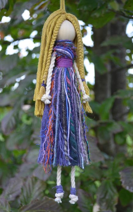 Čarobna punčka je narejena v tehniki makrameja iz naravnih materialov - les, bombaž in posebne umetelne preje (svila, volna, viskoza ipd.).