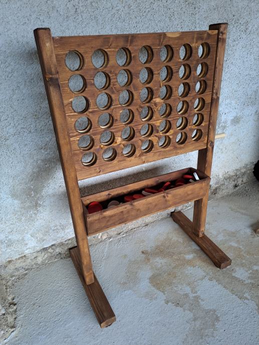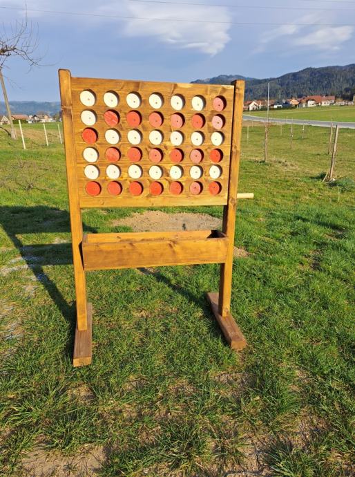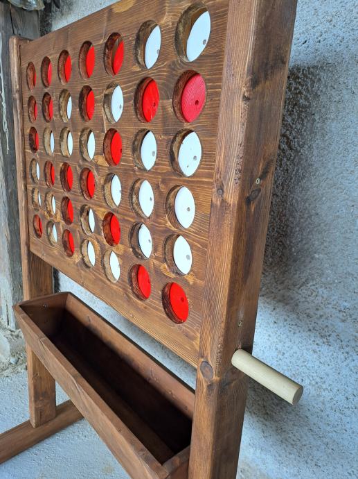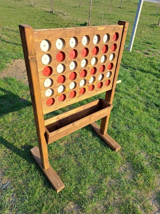 Strateška igra za vse generacije bo na vaše dvorišče vnesla zabavo, otroka pa bo vzpodbujala k logičnemu razmišljanju. Igra je narejena iz slovenskega smrekovega lesa. Zaščitena je z globinsko impregnacijo in tankoslojno lazuro za les hrast rustikal.