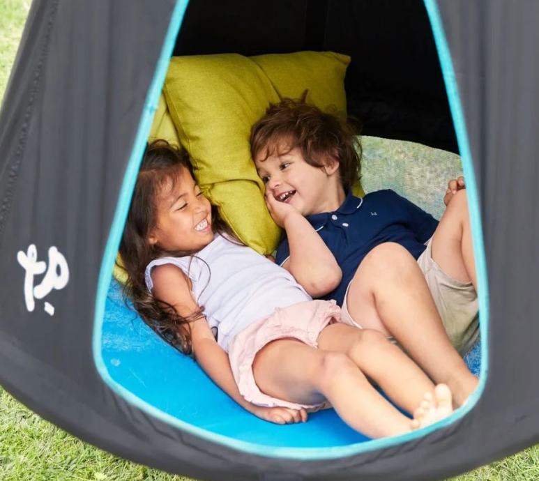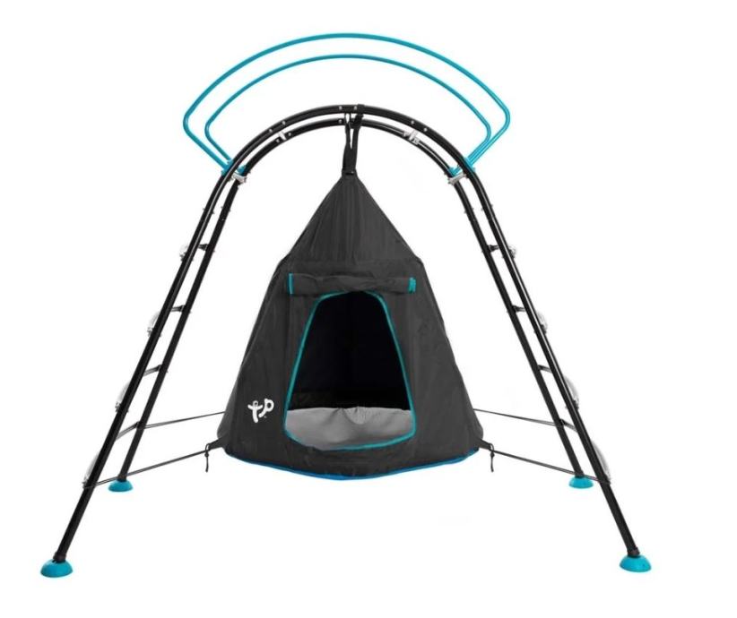 Jekleno pleazlo, ki s kombinacijo plezala in visečega stola poskrbi za hitrejši utrip otrokovih src. Plezalni okvir je izdelan iz trdnega jekla in zaradi nagibnih nog varno stoji na tleh. Ko se vaš otrok naveliča plezanja gor in dol, ponuja viseči stol v obliki jame udoben prostor za počitek. Viseči stol je varno povezan s plezalnim okvirjem in je izdelan iz zračnega, vremensko odpornega poliestra. Ponuja prostor za domiselno sprostitev in guganje 2 otrokom. Vhodna vrata so na zaklepanje, tako da ima vaš mali pustolovec prostor za otroške skrivnosti.