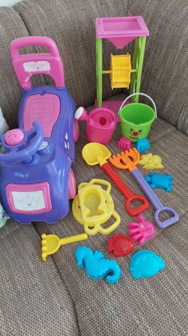 Prodam komplet igrače za peskovnik, cedilo, lopatke, garbljice modelčki, vedro, zalivalna kanglica, mlinček višine 34 cm.