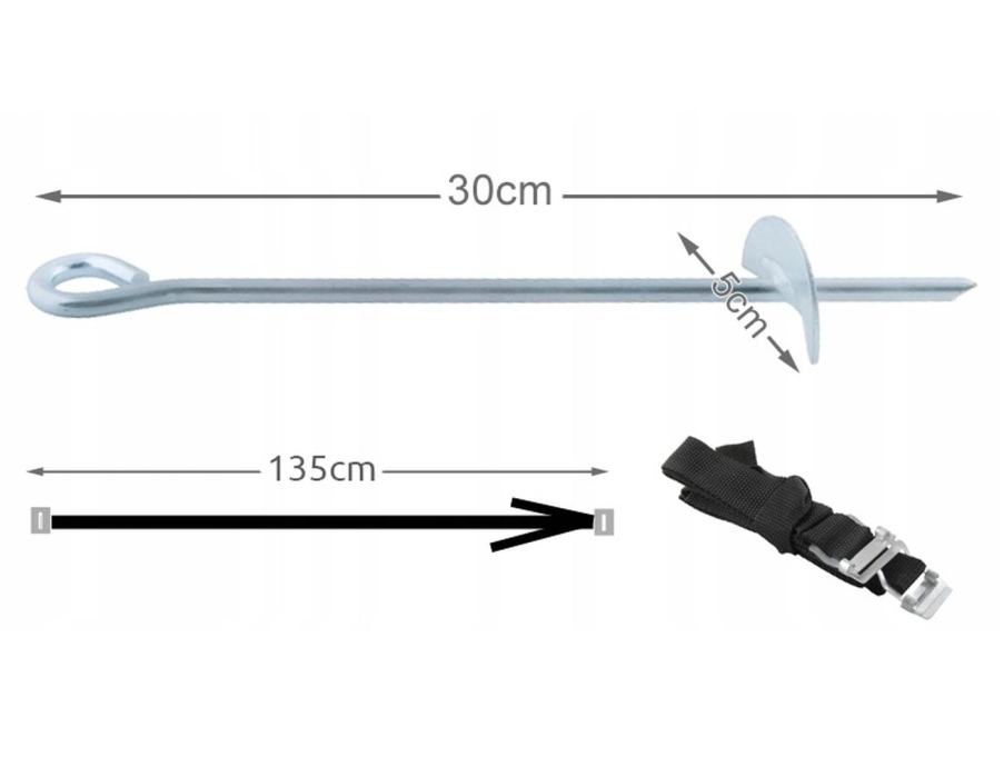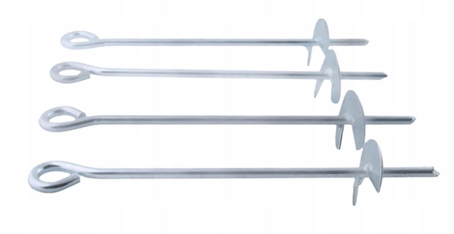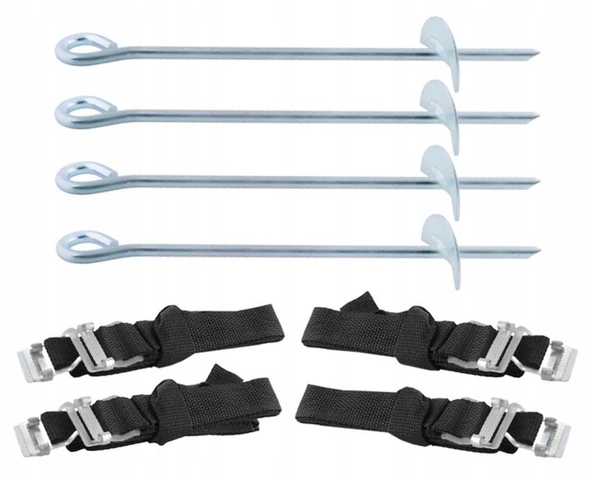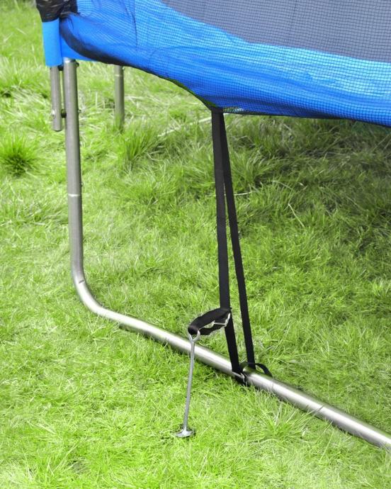 Komplet univerzalnih pritrdilnih sider za vrtne trampoline. Med močnim vetrom so nepogrešljivi dodatki.