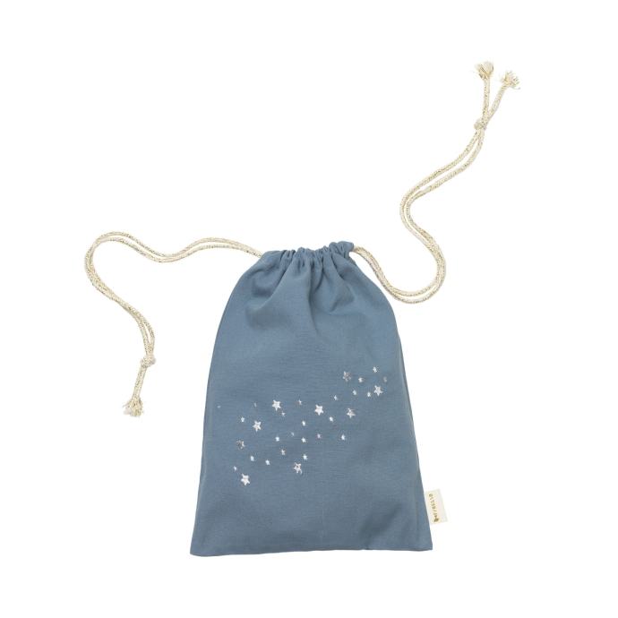 Fabelabova ljubka darilna vrečka z izvezenim motivom zvezdne noči ponuja trajnostno alternativo tradicionalnemu zavijanju daril. Uporablja se lahko znova in znova in hkrati pa lahko služi za praktično shranjevanje po odprtju daril.