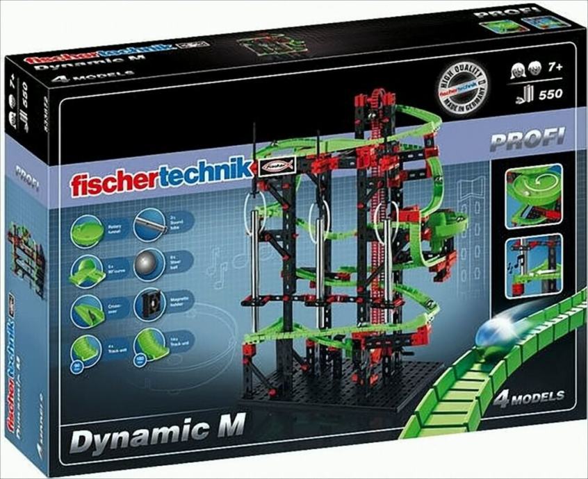 Akcijski in zvočni elementi odpirajo številne možnosti ter omogočajo še bolj razburljive postavitve prog. Med hitrim spuščanjem jeklene kroglice povzročijo, da zvočne cevi zazvenijo z melodičnimi toni. Nato kroglice po popolnoma novem načinu potujejo skozi spiralni lijak do naslednje proge. Med potjo kroglice tudi švigajo in preskakujejo skozi tesne 90° ovinke ter stikalo. Ko prispejo na dno, jih ročno upravljano verižno dvigalo ponovno prenese na vrh. Konstrukcijski komplet Dynamic M omogoča izdelavo štirih razburljivih prog za kroglice.