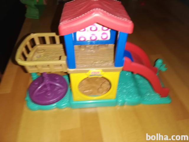 Fischer price igralo, brezhibno. Ob pritisku na modro ploskev na toboganu je zvok, ko zavrtiš vrtiljak je melodija. Sem iz Maribora. Video ne gre naložit, lahko ga pošljem po mailu.
