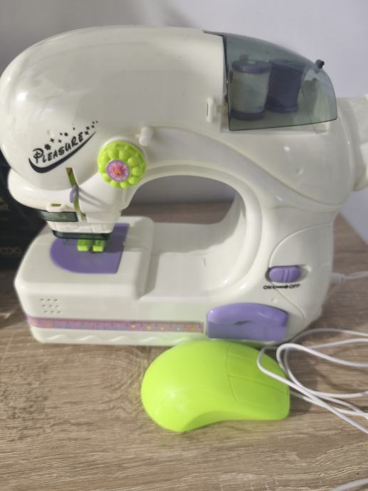 Prodam nikoli rabljeno igraco šivalni stroj. Dela preko usb in svetijo lučke.