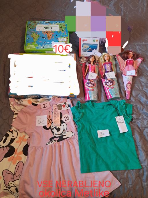 Na prvi sliki igrače in oblekice original zapakirane in nerabljene.