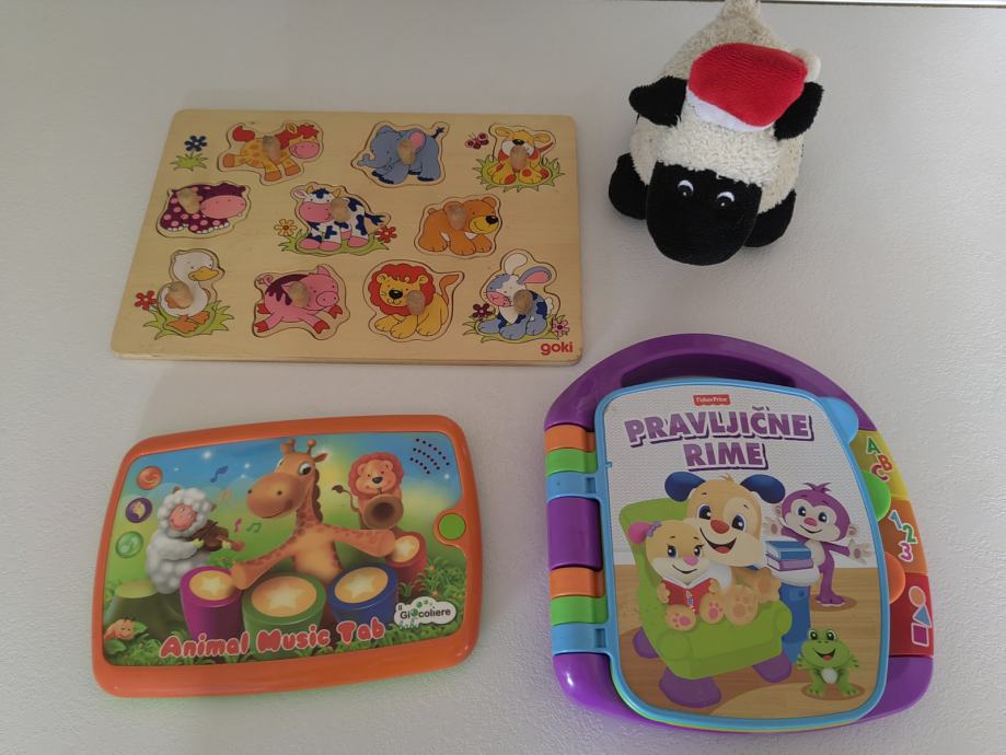 Sestavljanke, glasbene igrače, kocke, knjige kartonske,..