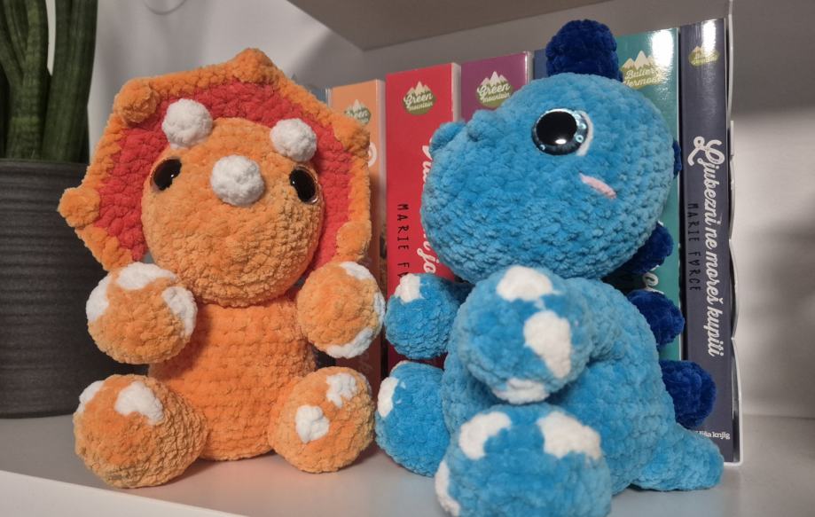 Ročno izdelana kvačkana igrača: dinozaver, velikost pribl. 18cm.