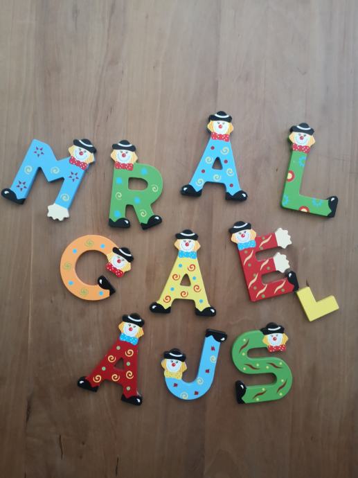 Prodam lepo ohranjene samolepilne lesene otroške črke za imena, prodaja se to kar je na sliki v kompletu.