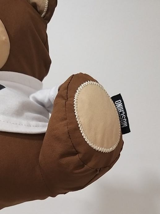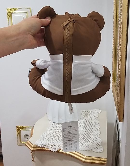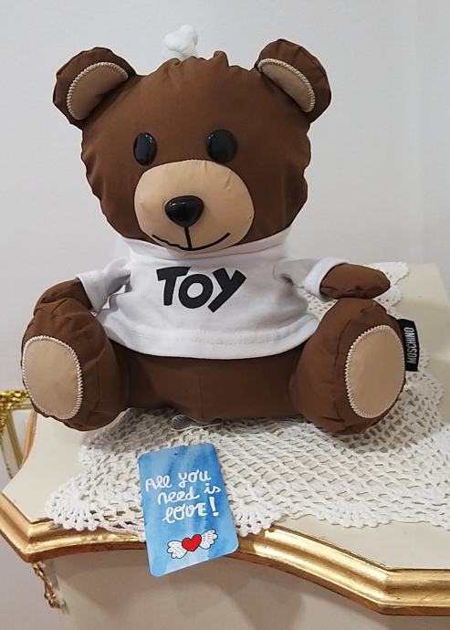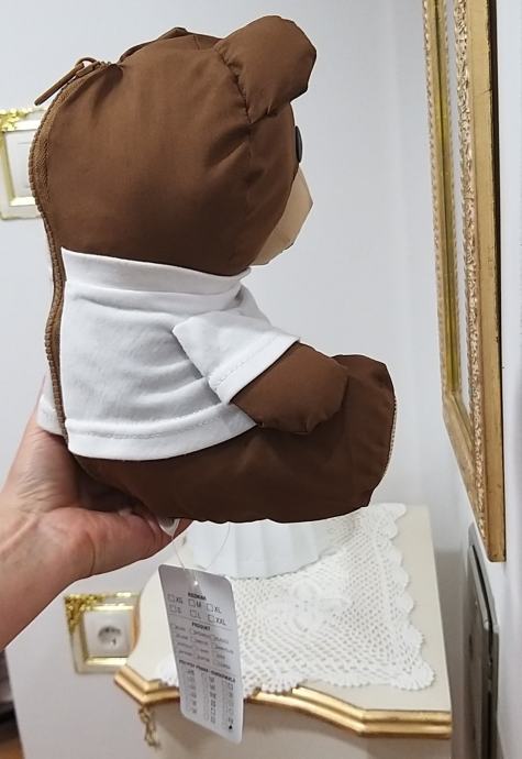 Moschino medved je novi z etiketo. Zadaj ima prostor, ki se zapira z delujočo zadrgo. Višina 26 cm.