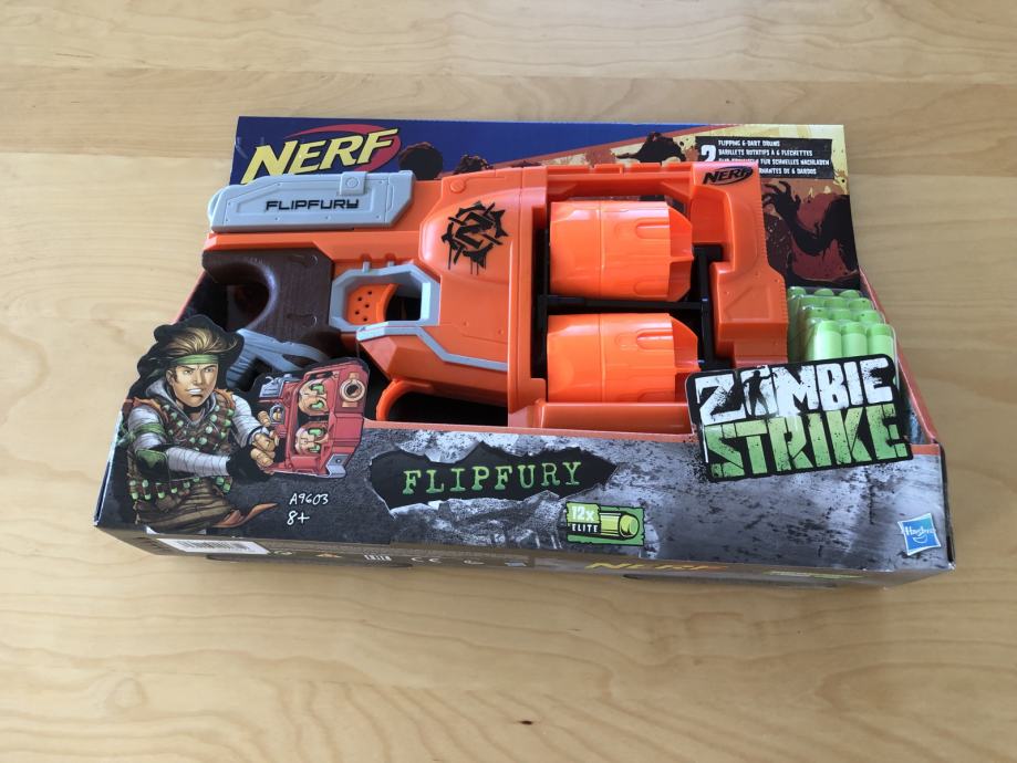 Originalno zapakirana in neuporabljena Hasbro Nerf Zombie Strike FlipFury pištola, z dvema revolverjema po 6 metkov.