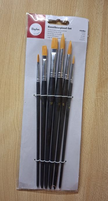 Novi, brezhibni, v embalaži. Set 6-ih čopičev velikosti: 4, 8, 12; dve različni obliki.