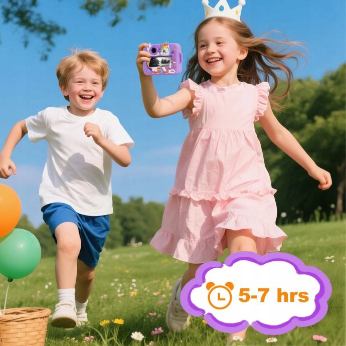 Ta inovativna kamera združuje klasično veselje do fotografije s sodobno tehnologijo termičnega tiskanja, ki omogoča, da vsaka posneta slika v trenutku postane že pripravljen papirnati spominek. Naprava podpira razvoj ustvarjalnosti, spodbuja otroke k izražanju in jim omogoča prve fotografske izkušnje, ki se sčasoma lahko razvijejo v pravo strast.