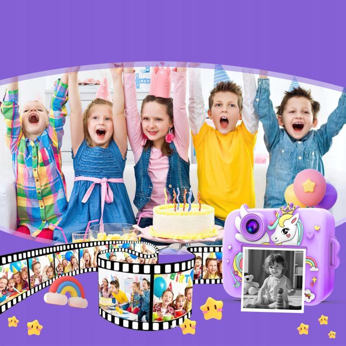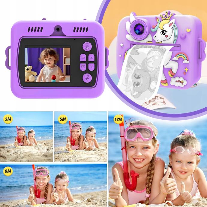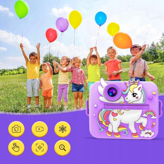Otroški fotoaparat Unicorn PRO za takojšnje tiskanje je edinstven pripomoček z vgrajenim termičnim tiskalnikom in dvema kamerama , ki omogoča fotografiranje, snemanje videoposnetkov in takojšnje tiskanje fotografij brez črnila. Njegova barvita, očarljiva oblika spodbuja ustvarjalno igro, preprosto upravljanje pa ga naredi odlično darilo za vsakega mladega fotografa.