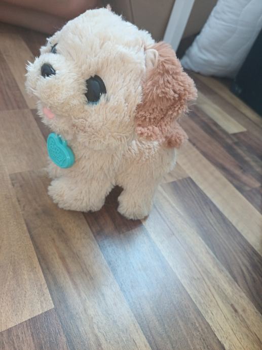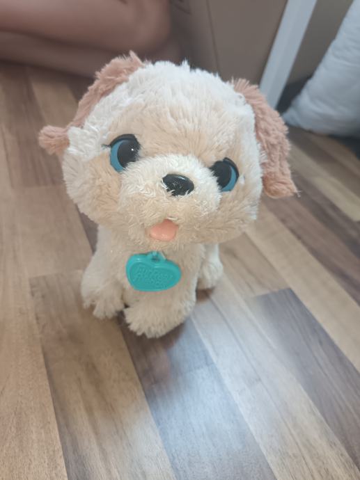 Prodamo psa, ki laja sedi in se vozi na koleščku.