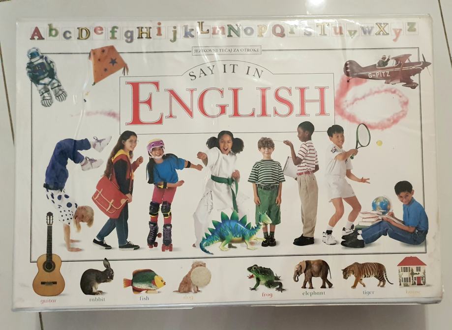 Prodam lepo ohranjen jezikovni tečaj za otroke SAY IT ENGLISH, Mladinska knjiga 1995.