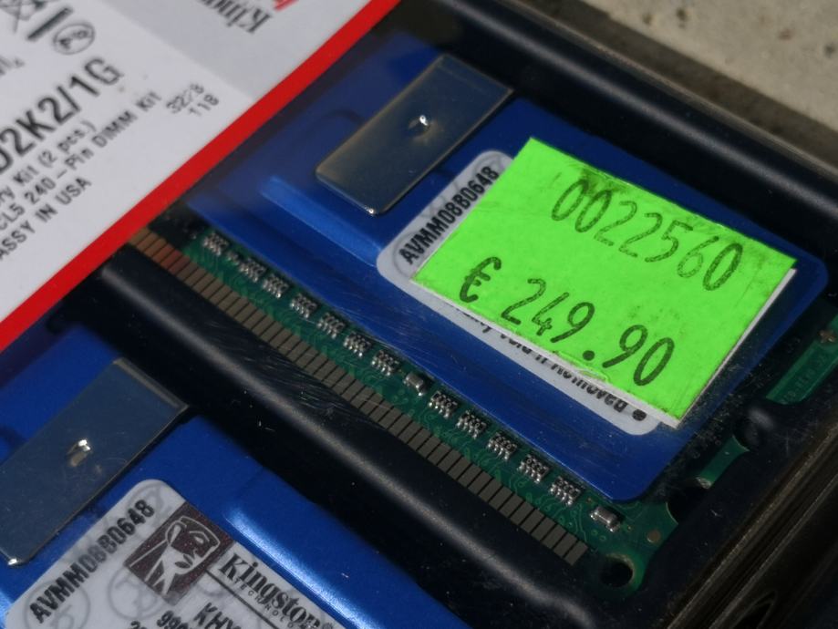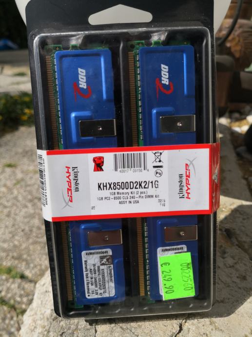 - DDR 2, 1G ram 2 kom zapakirana, za zbiratelje, kingston HYPER, 1GB MEMORY KIT, 1GB PC2-8500 CL5 240 - pin DIMM, zapakirana škatla - cena je napisana 249€, - 29,99€,