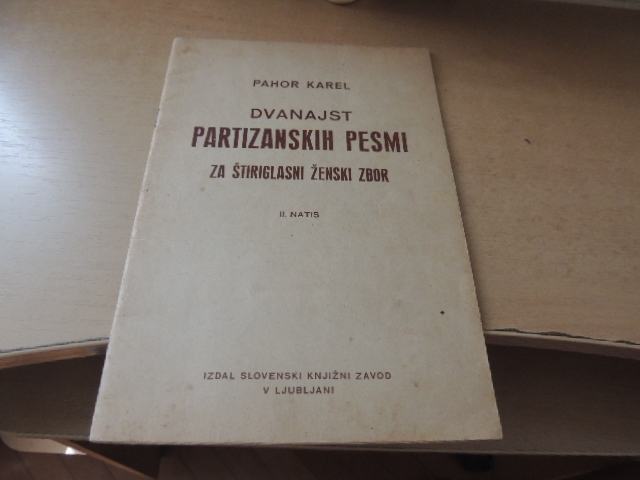 DVANAJST PARTIZANSKIH PESMI ZA ŠTIRIGLASNI ŽENSKI ZBOR K. PAHOR IZDAL