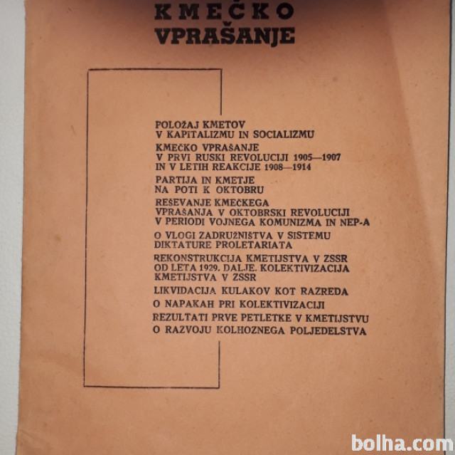 Knjiga zajema razvoj kmetijstva v Rusiji od leta 1905 dalje. 80 strani, letnik 1949. Tel.: 040-853-302.
