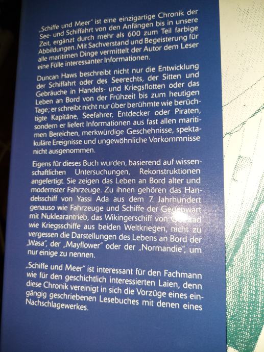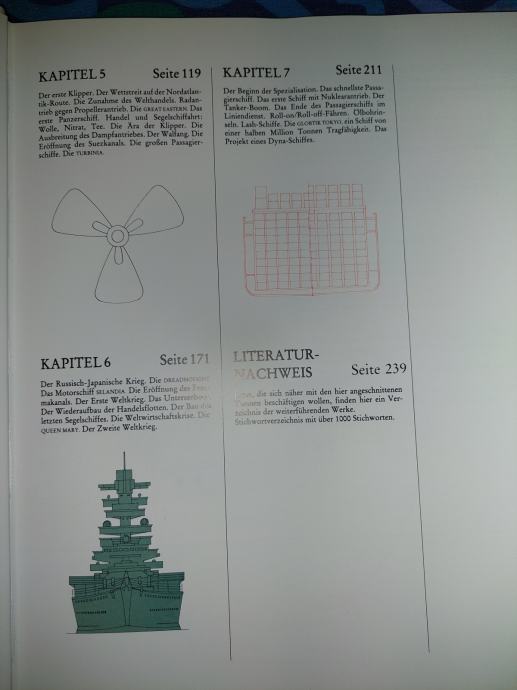 Knjiga je svojevrstna kronika morja in ladijstva od začetkov do danes. Zanimivo tako za strokovnjaka kot za zgodovinsko zainteresiranega laika. Več kot 600 ilustracij, nekatere tudi barvne, dopolnjuje podatke s skoraj vseh pomorskih področi.