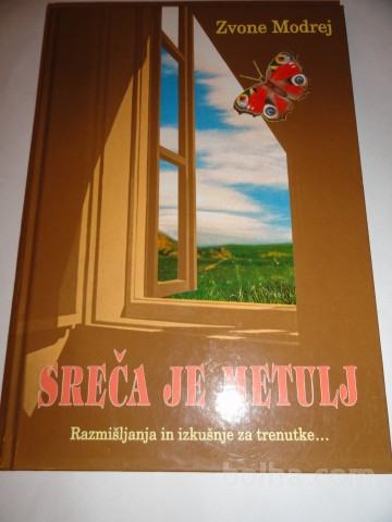 Knjiga SREČA JE METULJ, RAZMIŠLJANJA IN IZKUŠNJE ZA TRENUTKE...,ZVONE MODREJ, samozaložba 1992, trde platnice, 141 strani, lepo ohranjena.