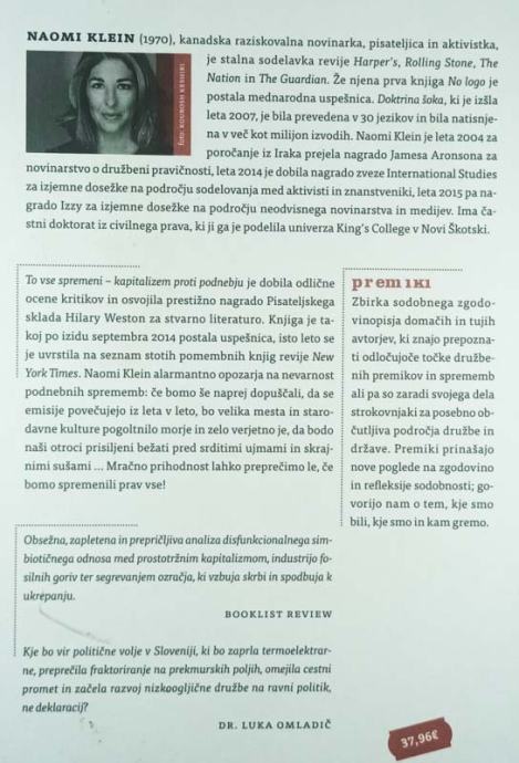 TO VSE SPREMENI; KAPITALIZEM PROTI PODNEBJU, Naomi Klein