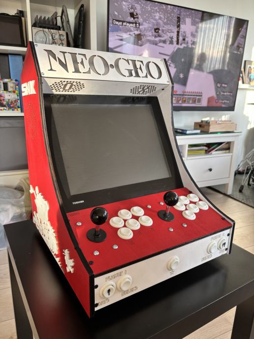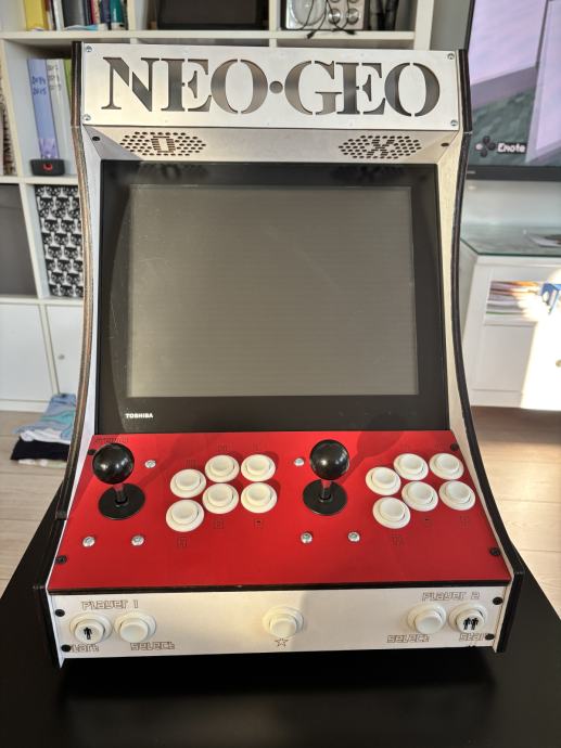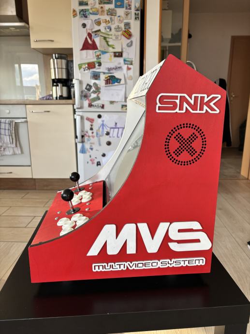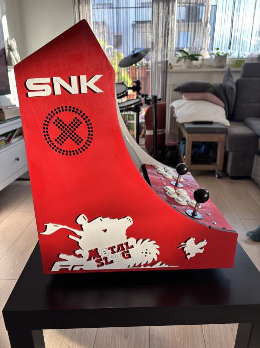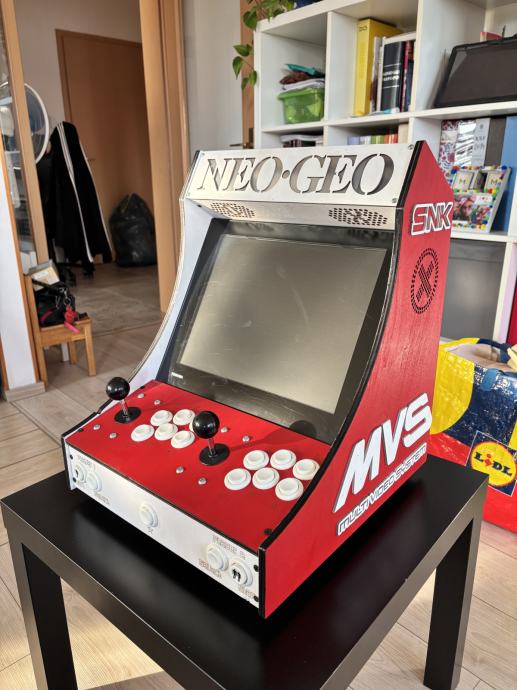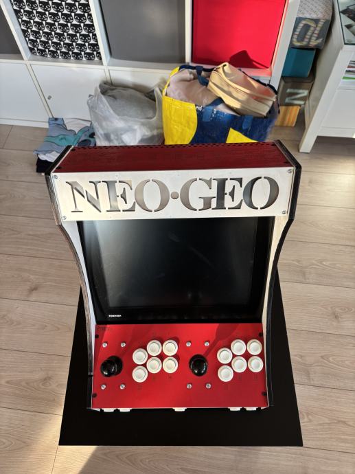 Prodajam ročno (!) izdelan igralni avtomat v tematiki "Neo Geo" rdeče barve. V tujini prav tako znan kot "Arcade Bartop".