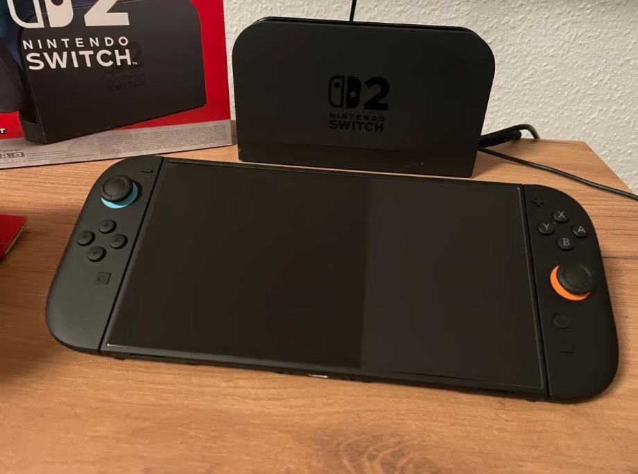 Prodam popolnoma nov Nintendo Switch 2 skupaj s Pro krmilnikom. Naprava je v popolnem stanju in deluje brezhibno. Na zaslonu je že nalepljena zaščitna folija brez mehurčkov. Vsi dodatki so še vedno v originalni embalaži.