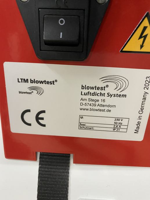 Blowerdoor merilna naprava / zrakotesnost Blowertest 3000. Kompletna oprema za testiranje zrakoprepustnosti objektov, po novem standardu ISO 9972. Regulator je pravkar kalibriran do 3/2027. Potrebna programska oprema, aplikacija dela na PC-ju, navodila za uporabo, gonilniki, kabli, cevi, okvir do 117x250cm, platno, torej vse kar potrebujete za testiranje, vse v zaščitnih ovitkih in torbici pod pogojem.