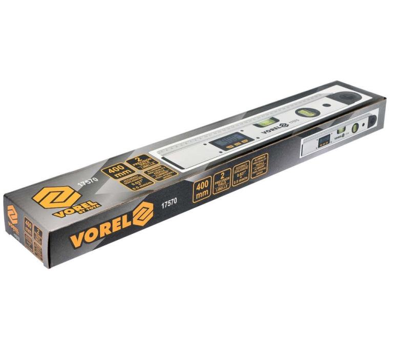 Ali morate kot čim bolj pravilno izmeriti? Elektronski kotomer Vorel z vodno tehtnico se zdi v veliko pomoč pri tej dejavnosti. Zelo priročno je prikazati velikost kota na osvetljenem LCD zaslonu. Razveselila vas bo funkcija Hold za začasen prikaz izmerjene vrednosti. In seveda obstaja tudi funkcija samodejnega izklopa. Kotomer ima merilno območje od 0° do 230° z natančnostjo ± 0,1°. Kotomer Vorel je izdelan iz visokokakovostnega aluminija z dvema