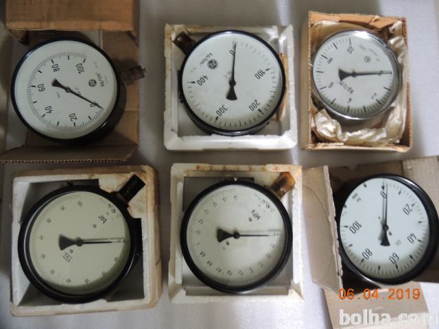 Manometri predvsem za hidravliko, nekaj tudi za pnevmatiko, itd. So različnih dimenzij in različnih merilnih območij. So nerabljeni. So še v tovarniški embalaži.