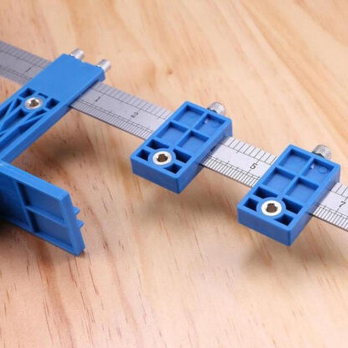 Orodje za centriranje lukenj. Izjemno praktična šablona za vrtanje. Ima dve premični ravnili (horizontalno in vertikalno) s centimetrsko skalo in luknjami za vrtanje premera 5 mm. Šablona omogoča črtanje po različnih materialih (les, kovina, plastika) in natančno označevanje točk za vrtanje. Posebni vpenjalni vijaki olajšajo fiksiranje nastavitve in ohranjajo orodje med vrtanjem trdno na mestu.