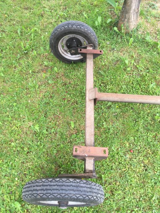 Prodam podvozje brako prikolice. Dolžina 1.8 m in širina osi 1.3 m. Gume so velikosti 10 col. Nahaja se v Kočevju. Kličite po 16.00.