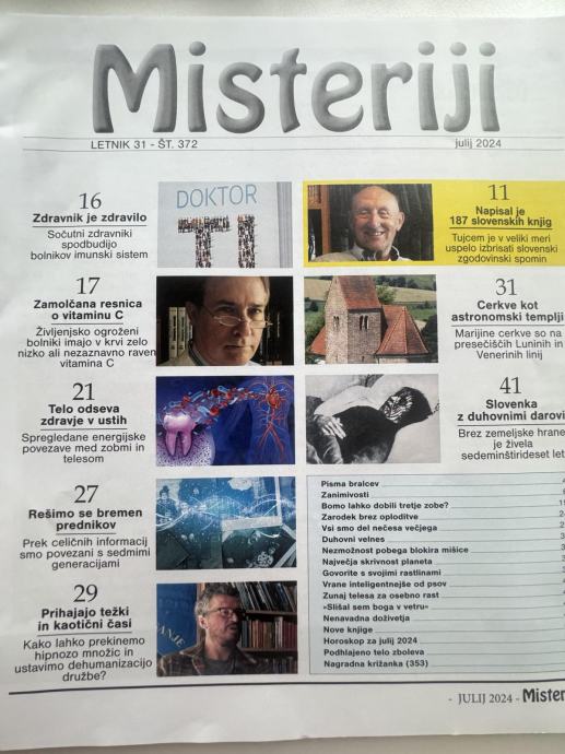 Prodam revijo Misteriji. Letnik julij 2024. Revija je nova, prodam jo za 2,50 eur.
