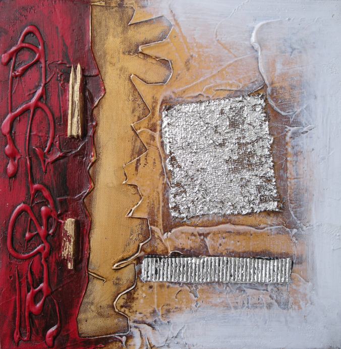Ročno izdelana 3D abstraktna slika na platnu, napeta na podokvir, velikost 30x30 cm.