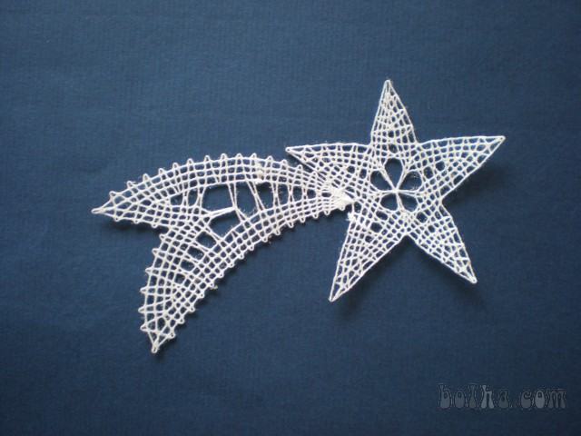 To je klekljana čipka. bele barve, velika je 11 cm.