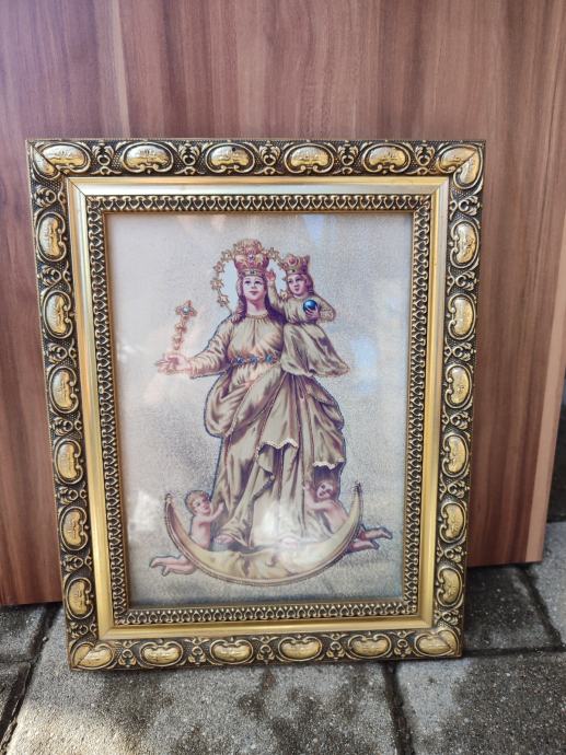 Nabožna slika Marije v lepem okvirju.