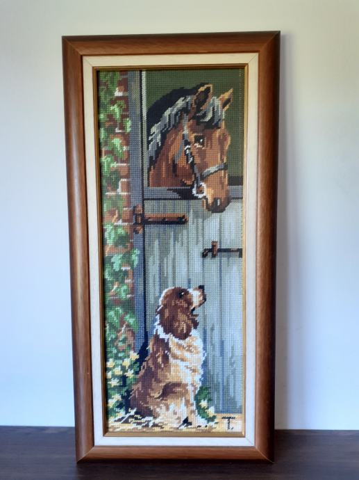Prodamo zelo lepo izdelan gobelin z motivom konja in psa. Primeren za otroško sobo ali dnevni prostor. Gobelin ima tudi zelo lep in kvalitetno izdelan okvir. Dimenzije 58 x 28 cm. Cena 60,00 eur. Prevzem možen po dogovoru tudi v Ljubljani, Kamniku ali Domžalah. Tel 031 763 786.
