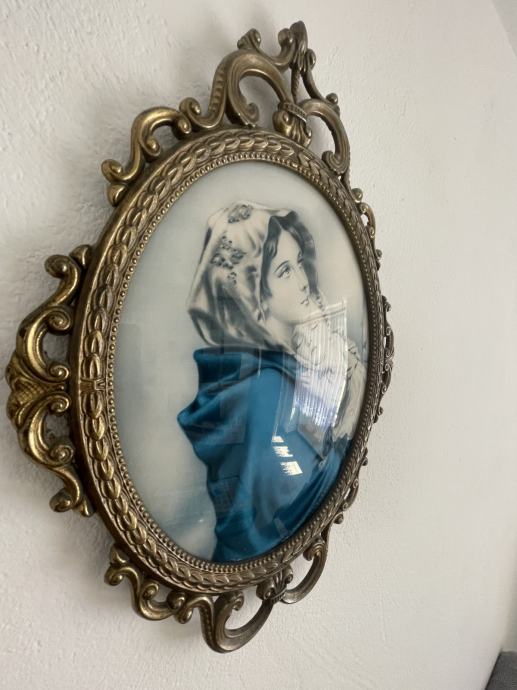 Prodam sliku Merije z otrokom staru preko 100 let v kovinskem okvirju. Dimenzje 50x30cm.