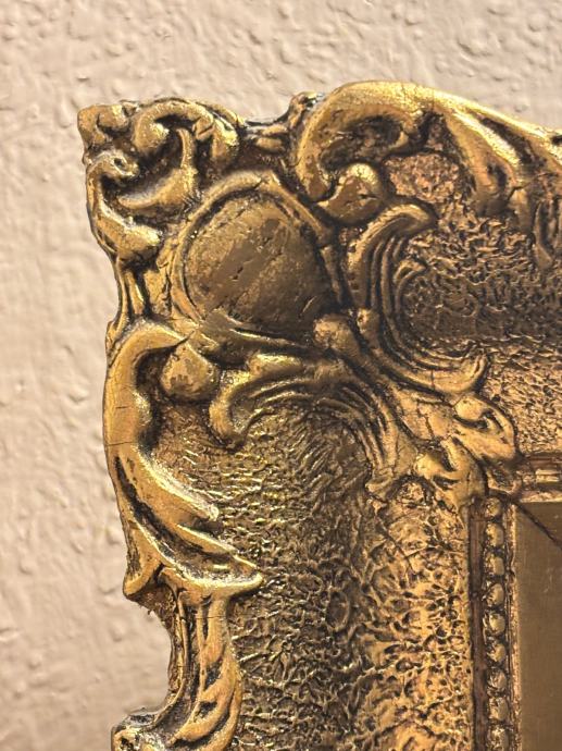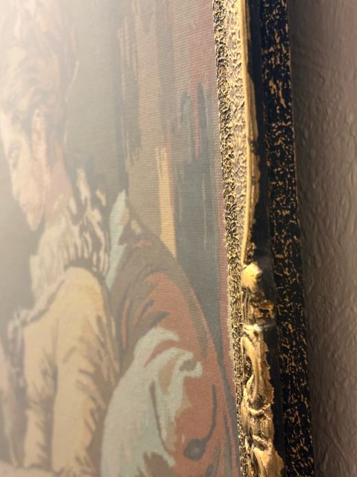 Gobelin je vstavljen v velik, bogato oblikovan zlato patiniran okvir iz 70.–80. let, ki je zelo masiven in dekorativen.