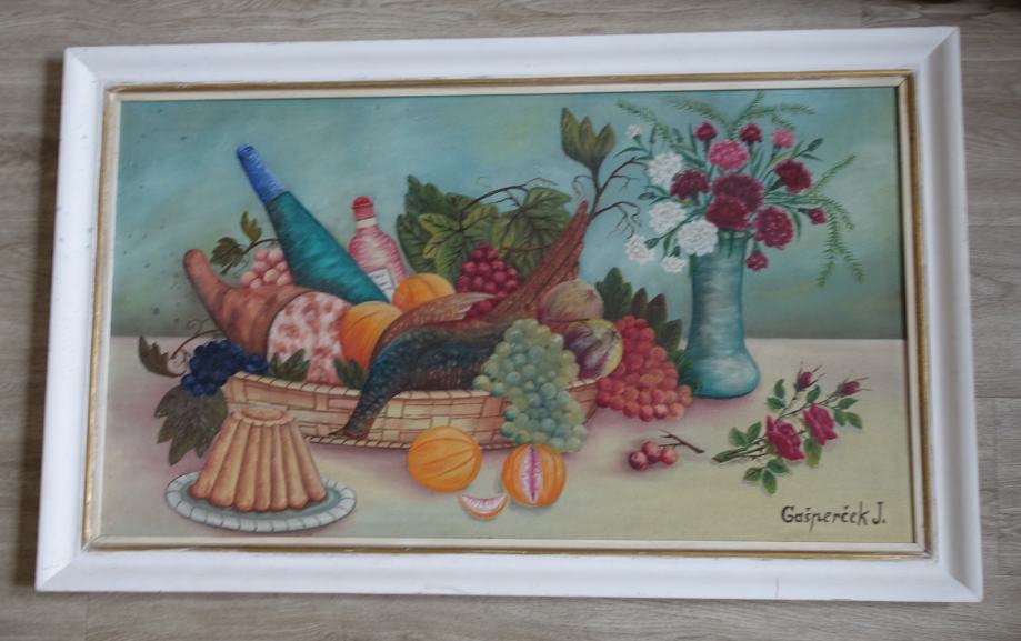 Okvir bele barve ni preveč lep, predvidevam, da je kak domači mojster obstoječi okvir pobarval z belo barvo, slika sama pa lepo natančno naslikana v barvah, ki poživijo prostor.