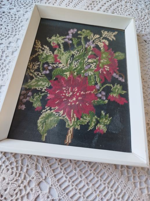 - Gobelin "Cvetje", natančno ročno delo s tanjšo nitko, v okvirju vel. 21x28x2,5 cm