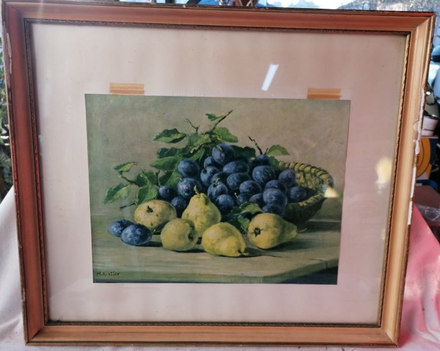 Na voljo je SLIKA v poškodovanem okvirju s steklom 60 x 52 cm SADJE.
