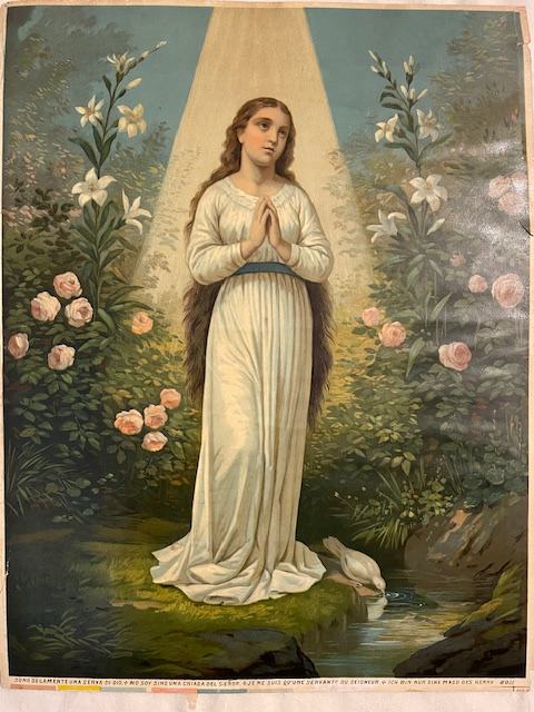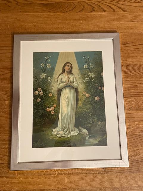 Sliko s podobo Marije, starejši barvni tisk verjetno izhaja iz ttridesetih let 20. stoletja, prodam.